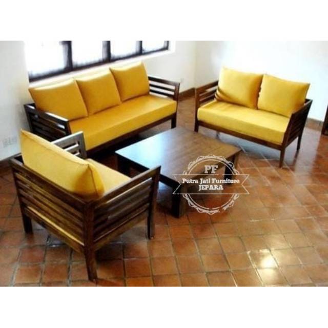 Meja dari set kursi tamu sofa minimalis jati.